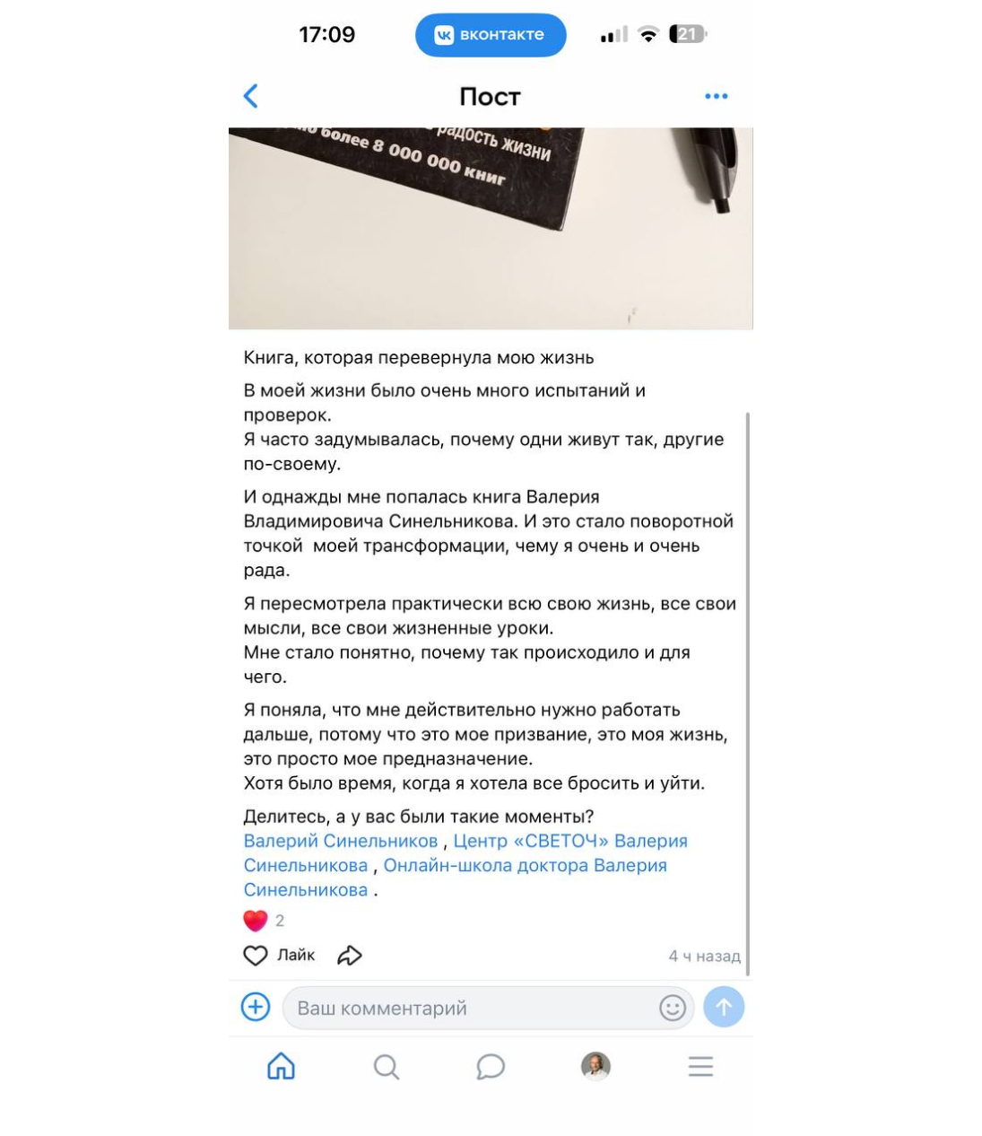 И однажды мне попалась книга Валерия Владимировича Синельникова. И это стало поворотной точкой моей трансформации, чему я очень-очень рада.